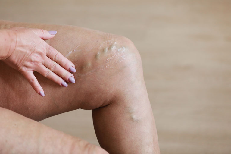 Mit der Kompressionstherapie wird durch Druck von außen auf das Venensystem der Rückfluss des Blutes in Richtung Herz gefördert.